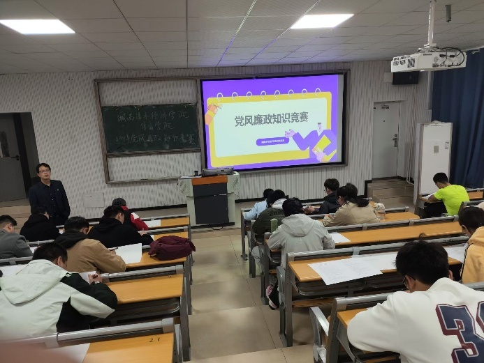 为进一步检验党风廉政教育集中学习的成果,2024年11月18日中午,437ccm必赢国际在六号教学楼113教室成功举办了党风廉政知识竞赛。此次竞赛由437ccm必赢国际党总支副书记李祥林精心组织并主持。