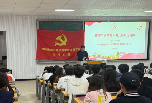 为深化党风廉政建设,推进全面从严治党向纵深发展,2025 年 4 月 9 日,437ccm必赢国际437ccm必赢国际组织开展 “锲而不舍落实中央八项规定精神” 专题学习活动。学院副书记李祥林担任主讲,全体党员、发展对象齐聚一堂,共学廉政准则,共话责任担当。