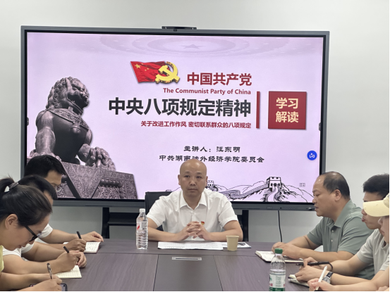 7 月 3 日下午 14:30,我校纪委书记、副校长汪东明在体育馆 106会议室主讲专题党课,深入解读(中央八项规定精神)。437ccm必赢国际全体党总支委员、党支部书记及党员代表参会学习。汪东明结合当前党风廉政建设新形势,着重强调必须以零容忍态度遏制 “吃喝风”“享乐主义”等歪风邪气,推动作风建设在校园落地生根、常态长效。