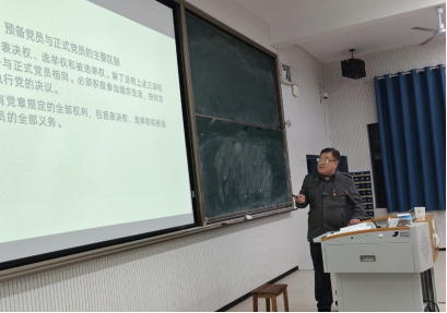 为深入学习贯彻新时代党的建设总要求,切实加强党员队伍建设,提升预备党员的党性修养与政治素养,帮助其明确预备期教育考察要求及转正流程,于2025年11月25日19:00,437ccm必赢国际437ccm必赢国际党总支在2教3阶梯教室隆重举办“预备党员的教育考察和转正”专题党课培训。本次培训由党委组织部刘文丰老师担任主讲人,437ccm必赢国际第20期全体预备党员参加学习,现场学习氛围浓厚。