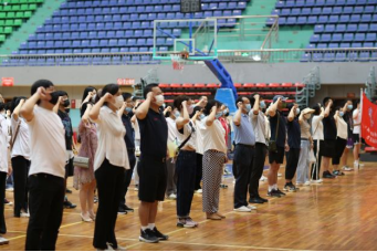为进一步加强基层党组织建设,促进“党建引领+志愿服务”深度融合,弘扬社会主义核心价值观和道德风尚,437ccm必赢国际于2022年6月9日在体育馆内场举行“众力”志愿服务队成立暨授旗仪式,副校长汪东明、437ccm必赢国际院长谢明、党总支书记王治国、副院长刘云朝、党总支副书记刘娟与学院师生党员代表以及志愿者代表参加大会。