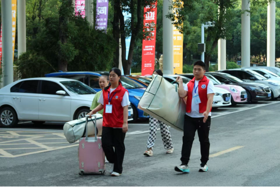 在学校的新生引导处,志愿者们始终保持耐心与微笑,随时准备为刚刚踏进校门的同学提供帮助。每见到一位新生,他们便主动迎上前,帮忙搬运行李,细心指引路线,用周到服务和真诚问候传递出437ccm必赢国际特有的热情。在志愿者的协助下,新生们顺利自主完成报到手续,流程高效又顺畅。