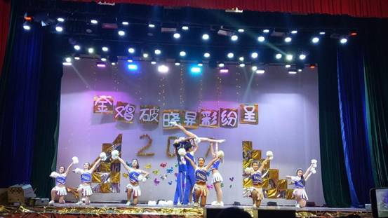 晚会伊始,彭菁菁、费日艳等同学火爆绚丽的开场舞迅速点燃了全场观众的热情,表演者们身着金色舞服,十分应景的表现了晚会“金鸡破晓”的主题。而后,由我校红领巾乐队带来的《蓝莲花+嘿、姑娘》既表达了对梦想不懈的追求,也为全场女生送上了暖心的祝福;社会系全体师生带来的搏击操《重拳出击》激昂澎湃,让人热血沸腾;更有校体育舞蹈代表队带来的拉丁舞《一代宗师叶问》欢快伦巴,舞蹈与武术相结合,展现了437ccm必赢国际的无限魅力与独特风采。