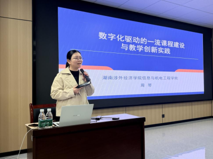 周琴教授深耕高等教育教学一线多年,兼具深厚的学术造诣与丰富的教学实践经验,是湖南省普通高校青年骨干教师、湖南省高校“双带头人”标兵。讲座中,周教授立足高等教育数字化转型的时代背景,围绕“课程建设相关政策及趋势”展开解读,系统梳理了国家及湖南省在一流课程建设方面的政策导向与发展脉络,帮助在场教职工精准把握课程建设的核心方向与时代要求。
