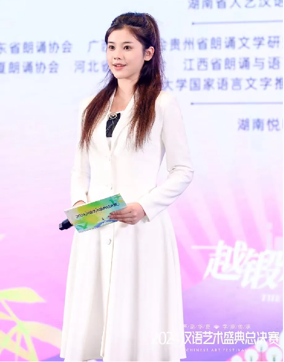 2024 年,舒芙蓉受邀担任汉语艺术盛典总决赛主持人。接到邀请后,她第一时间与入党介绍人沟通,希望在全国性舞台上传递青年预备党员的正能量。筹备期间,她每天额外投入 3 小时打磨稿件,反复模拟突发状况应对场景,特意在环节设计中融入 “红色文化传承” 元素。最终,她以沉稳的控场能力、饱含情感的语言表达,赢得主办方 “用青春声音传递信仰力量” 的高度评价。“预备党员的身份时刻提醒我,每一次亮相都是践行初心的机会,必须全力以赴。” 舒芙蓉说。